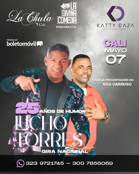 El reconocido comediante colombiano llega con un espectáculo especial para celebrar su trayectoria en el mundo del humor, ofreciendo un show cargado de picardía, ocurrencias y ese estilo único que lo ha convertido en uno de los favoritos del público. Este imperdible evento se llevará a cabo el próximo 7 de mayo de 2026 en el icónico recinto La Chula Cali, ubicado en la ciudad de Cali, Valle del Cauca.