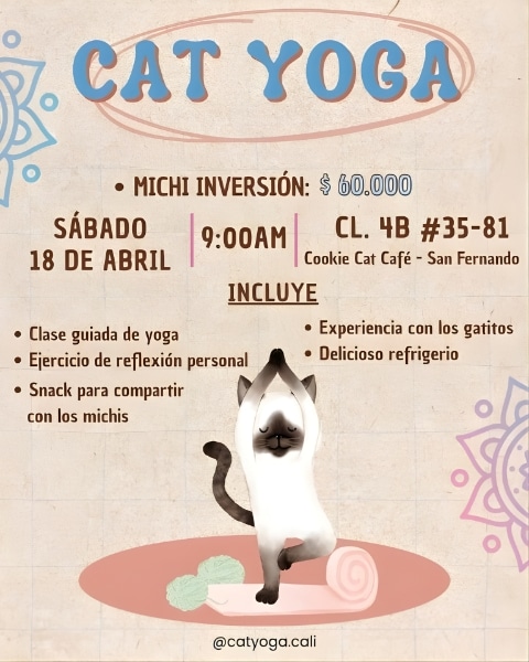 enemos una nueva y hermosa sesión de yoga este sábado 18 de abril 🧘🏽♀️🐈💗