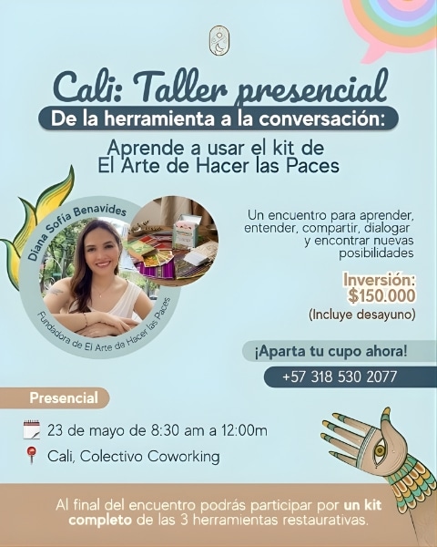 n este taller vas a conocer y aprender a utilizar herramientas con un enfoque restaurativas para abrir, sostener y transformar conversaciones: