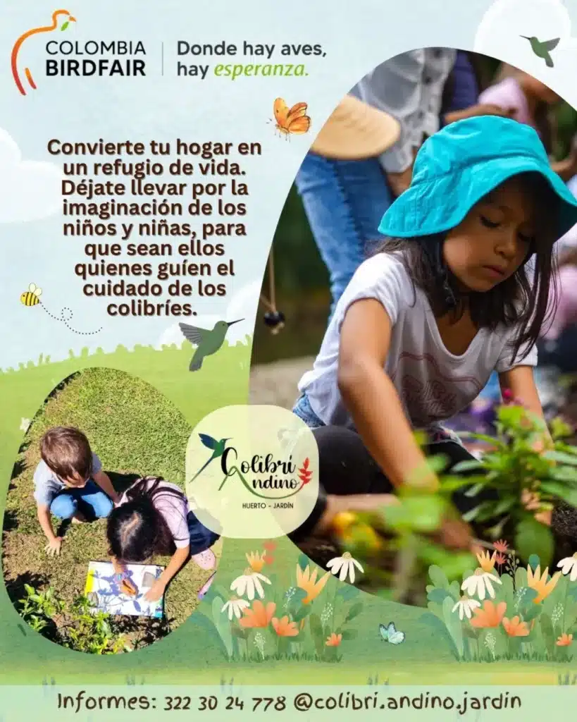 ¡Hola! Este será nuestro 6to año participando en la @colombiabirdfair 🎂🎊y aunque ya nos han conocido por compartir charlas virtuales, conferencias teóricas, talleres prácticos de jardines para colibríes 🌷🌸🌻 para adultos y hasta participamos en stands, esta vez venimos con una propuesta dirigida a las infancias y juventudes 🐥.
