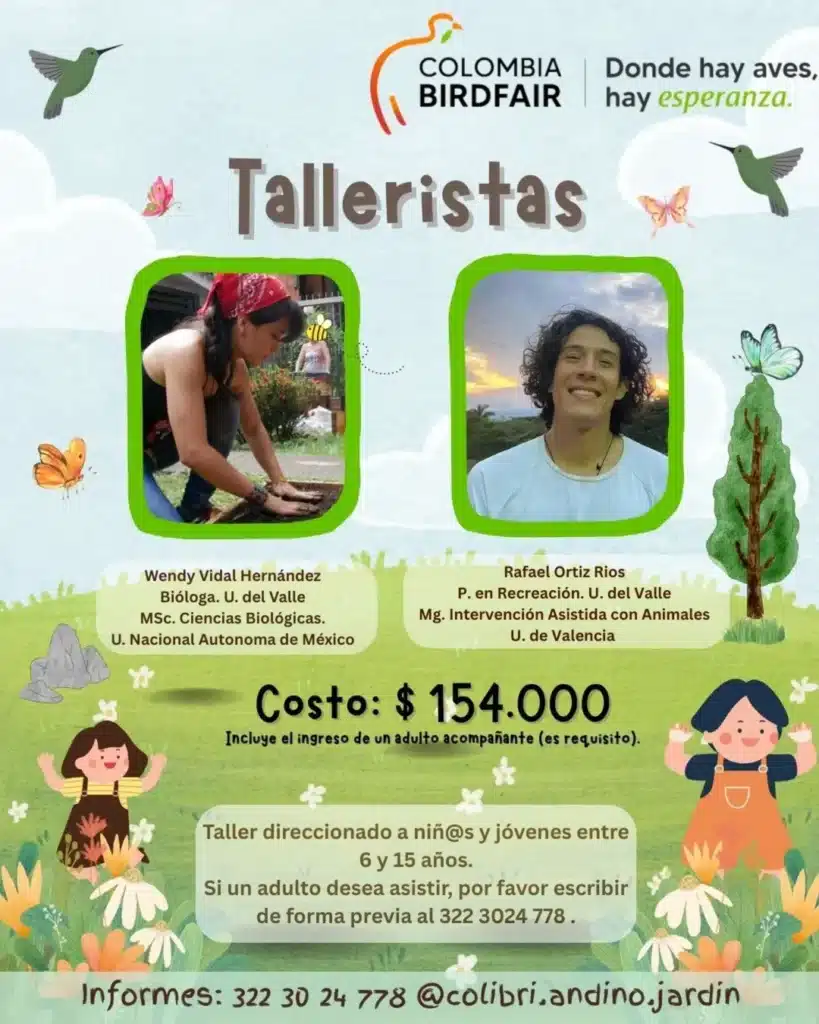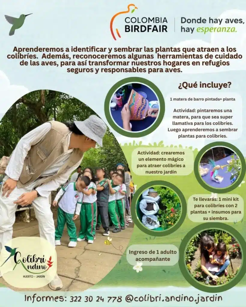 – 💲154.000 incluye materiales 🎨, mini kit para colibríes 🌷y el ingreso de un adulto acompañante 🧑🧒 (es requisito).