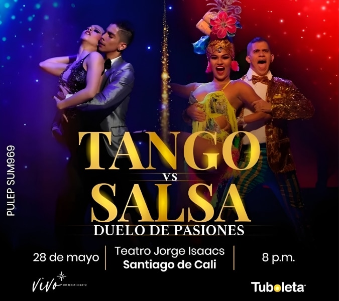 TANGO VS SALSA – “Duelo de Pasiones” Un espectacular mano a mano de campeones donde dos gigantes de la danza se enfrentan en escena para celebrar, desde la pasión, la fuerza y el arte, la grandeza de nuestras culturas. Esta puesta en escena fusiona lo mejor de la salsa caleña y la cultura latina con el tango y la milonga, ritmos cargados de mística, ganchos y firuletes, en un duelo vibrante que despierta todos los sentidos.